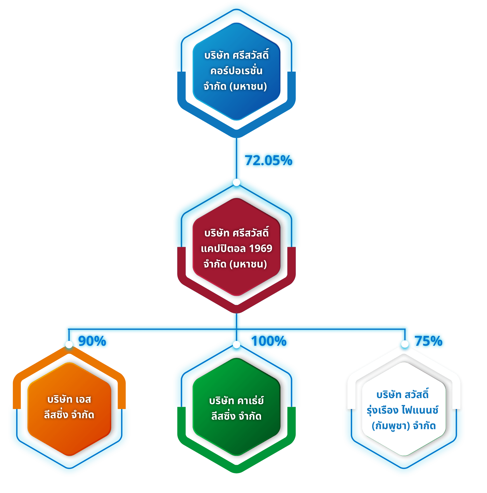 บริษัท ศรีสวัสดิ์ แคปปิตอล 1969 จำกัด (มหาชน) หรือ SCAP และบริษัทในเครือในประเทศไทยได้แก่ บริษัท เอส ลีสซิ่ง จำกัด และบริษัท คาเธ่ย์ ลีสซิ่ง จำกัด และในประเทศกัมพูชา ได้แก่ บริษัท สวัสดิ์ รุ่งเรือง ไฟแน้นซ์ (กัมพูชา) จำกัด มีวัตถุประสงค์ ในการดำเนินงาน เพื่อให้บริการด้านสินเชื่อที่ไม่มีหลักทรัพย์ค้ำประกันและสินเชื่อเช่าซื้อครบวงจร สำหรับลูกค้ารายย่อยทั้งลูกค้าบุคคลธรรมดา และนิติบุคคล ซึ่งเน้นการให้บริการด้านการเงินที่สะดวก รวดเร็ว และคำนึงถึงความต้องการ และความปลอดภัยของข้อมูลของลูกค้า ควบคู่กับความใส่ใจในความเป็นอยู่ที่ดีของเพื่อนพนักงานเพื่อให้ได้รับความสะดวกสบาย พร้อมสร้างสรรค์และพัฒนาผลิตภัณฑ์และบริการที่ดีอย่างต่อเนื่อง ภายใต้การบริหารงานจากทีมงาน ผู้บริหารมืออาชีพที่มีประสบการณ์จากหลากหลายองค์กร ด้านการเงินการธนาคาร ด้านเทคโนโลยีสารสนเทศ ด้านการบริหารความเสี่ยงและความชำนาญการในระบบปฏิบัติการสินเชื่อ และด้านบริหารงานขายทั้งเบื้องหน้าและเบื้องหลัง ที่มีประสบการณ์ยาวนานกว่า 30 ปี เป็นต้น
